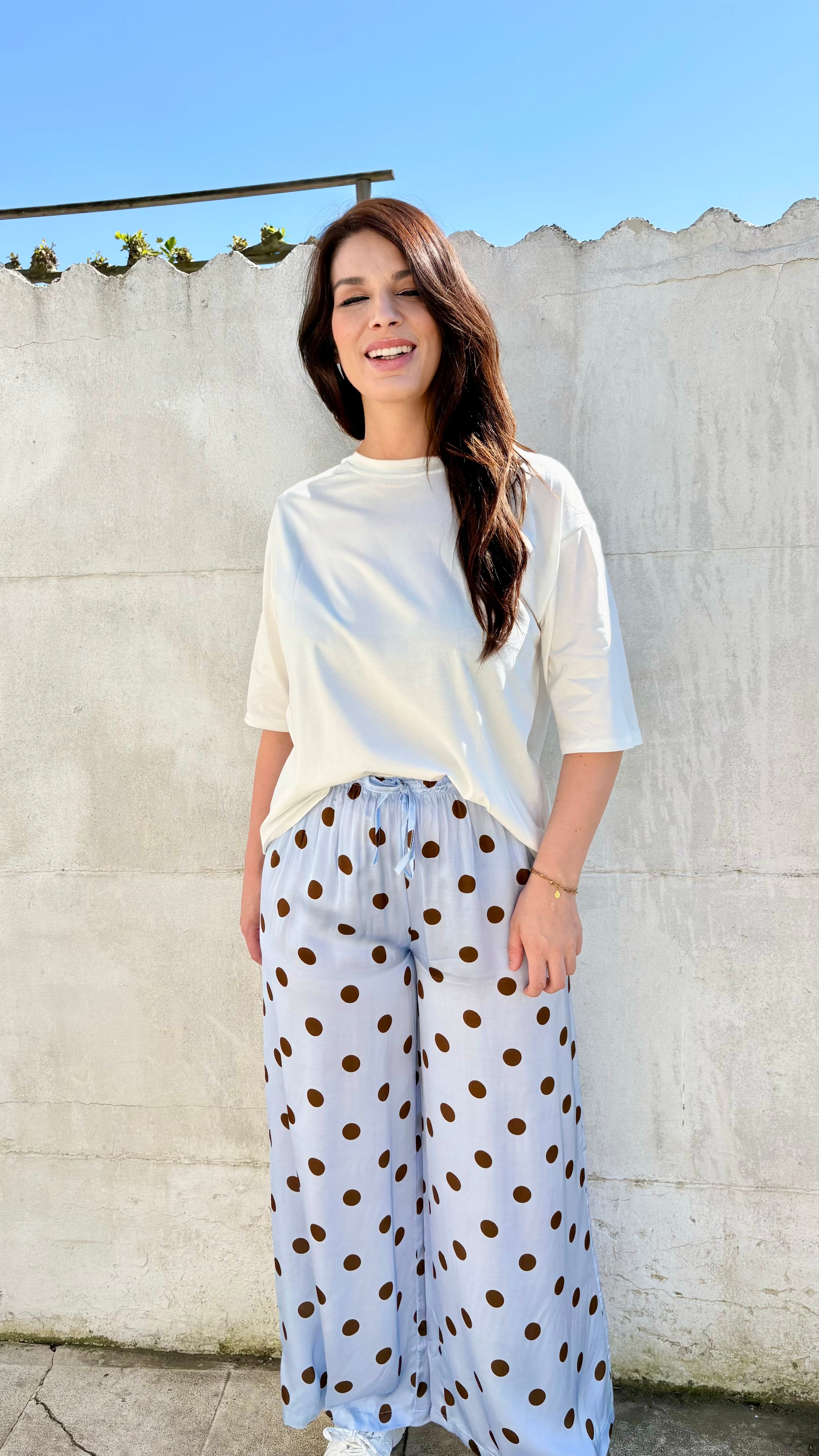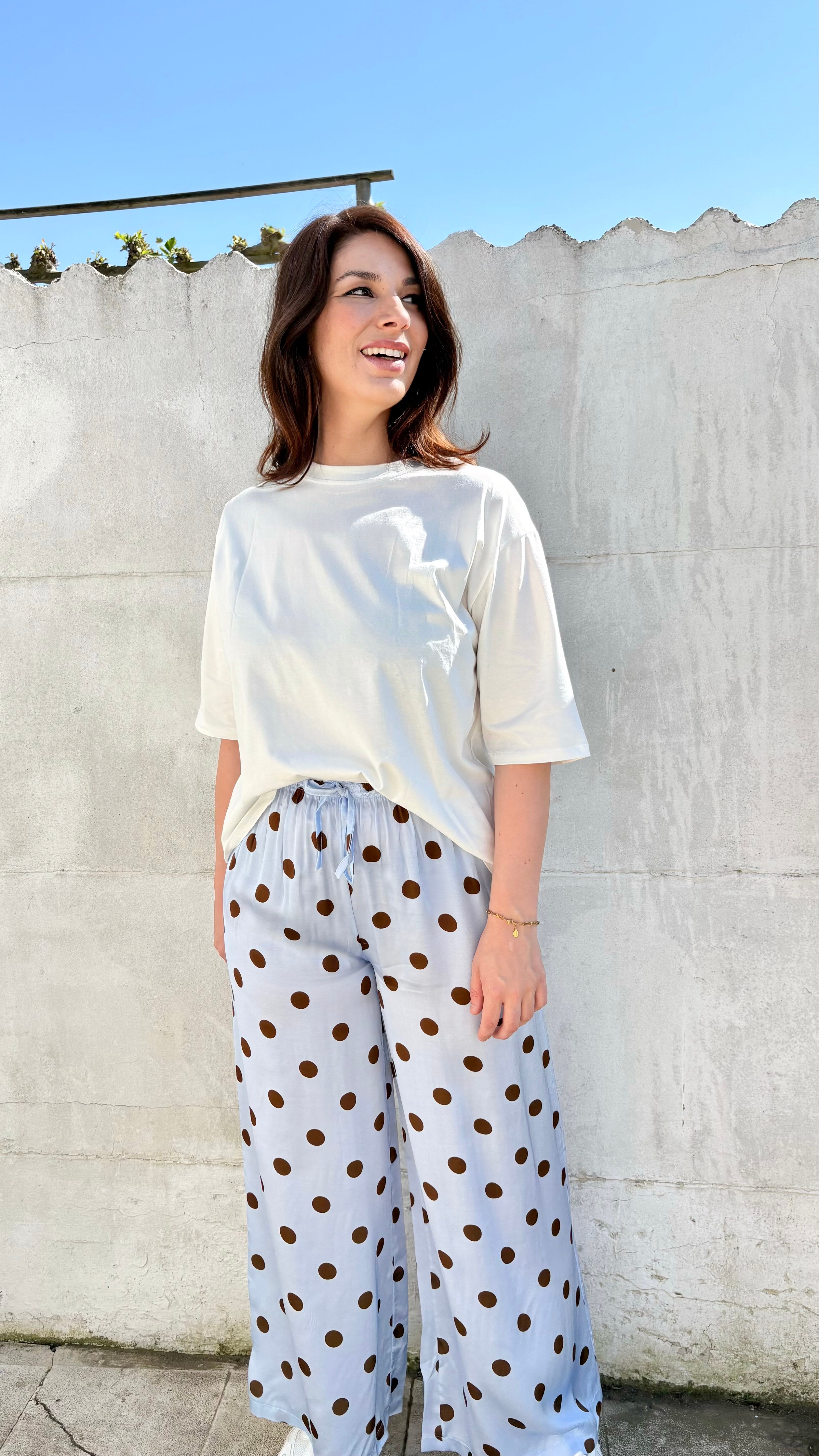 Polka dot broek | blauw-bruin